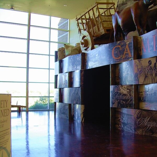 Due to the remote location, building El Camino Real Historic Trail Site was quite an ordeal. New Mexico Historic Sites, the architect and contractor, and Friends of El Camino Real all worked together for two years to see the dream come true. The Historic Trail Site has received several awards for the displays and presentation.