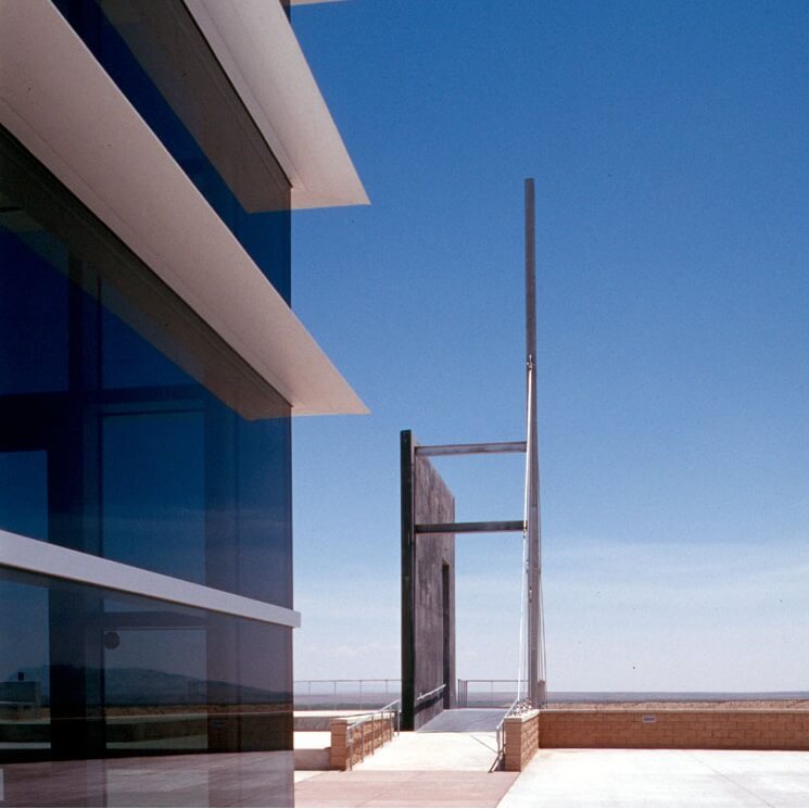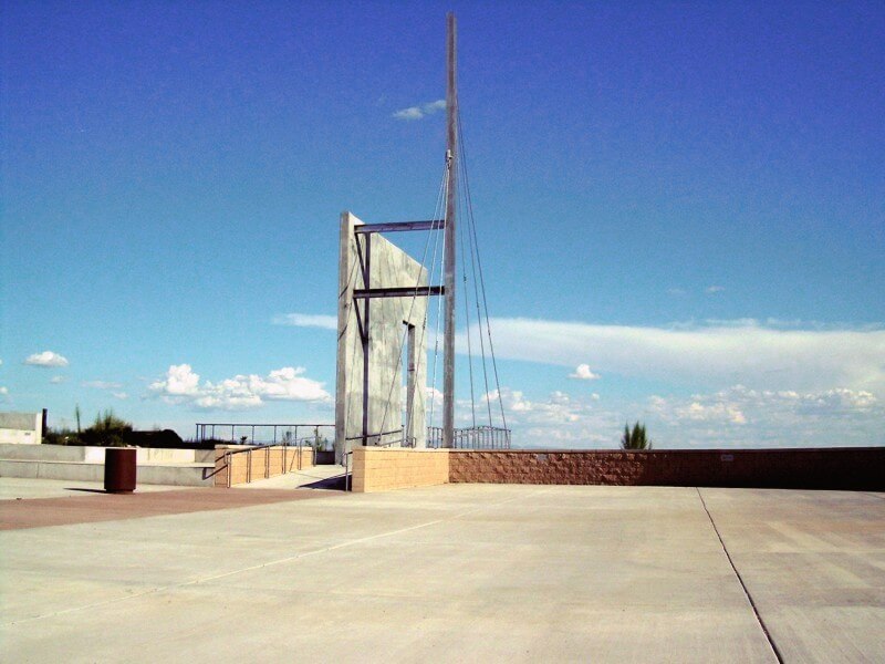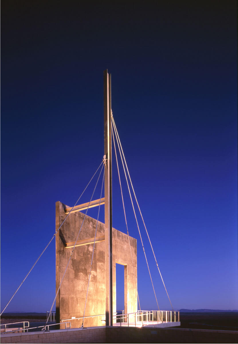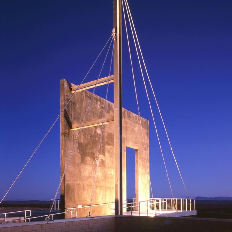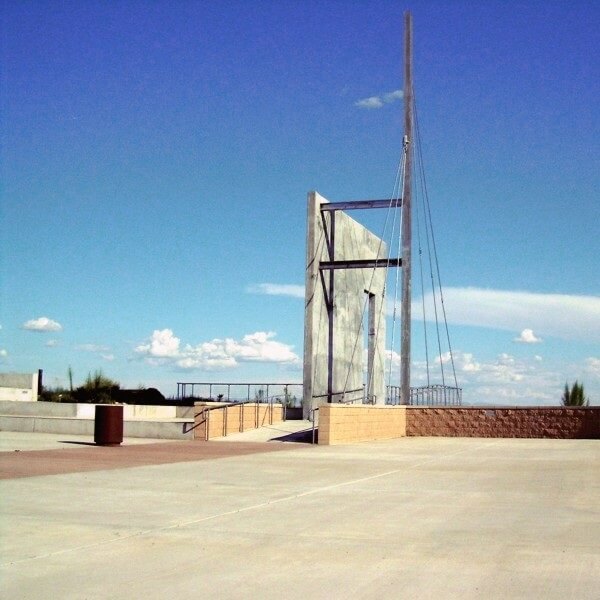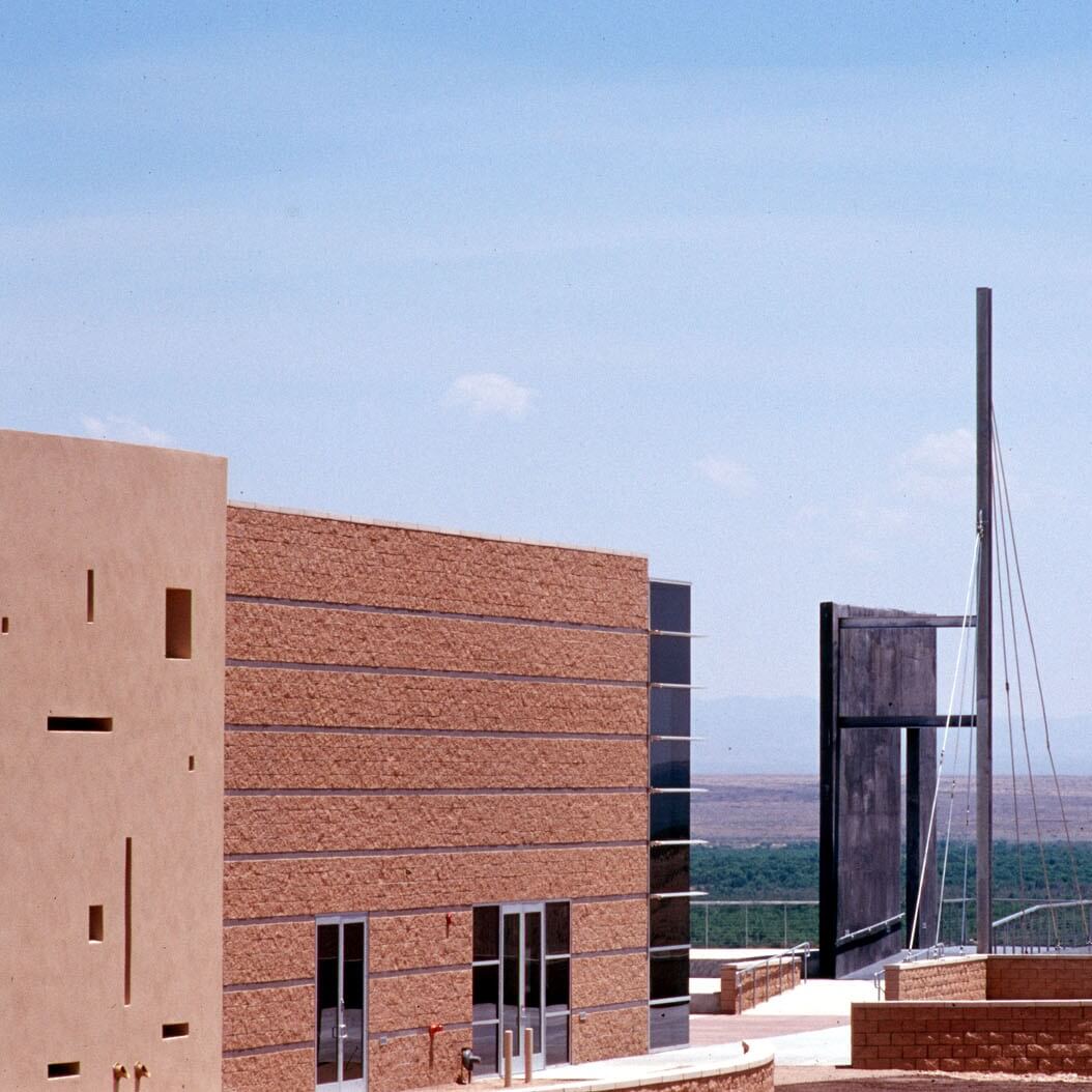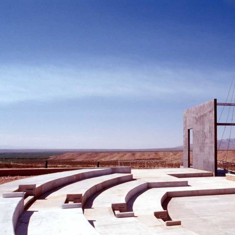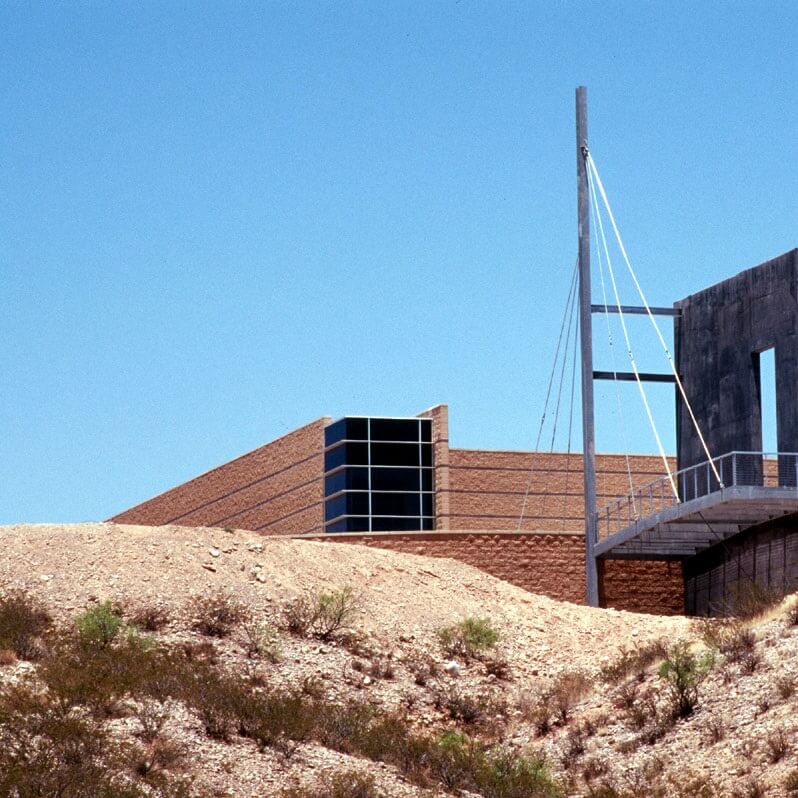 Sited in the southern desert of central New Mexico, this sculpture marks the entrance to the El Camino Real Historic Trail Site. Originally planned as a joint effort between Mexico and the United States, the Historic Trail Site contains award winning exhibits, an interpretive learning center, and artifacts presenting the history and heritage of El Camino Real de Tierra Adentro. The Historic Trail Site itself sits along the original Camino Real and is a stunning work of architecture.