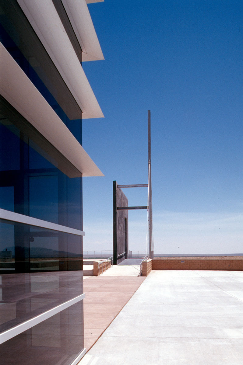 This was a 1% for public art project and my first monumental public commission. I created the design after months of research in the historical archives at the University of New Mexico, numerous site visits including several overnight camp outs, on site meditations and conversations with a diverse group of stakeholders in the project including a descendant of one of the original Spanish land grant families still living in the area. Having read numerous historical accounts of travelers along the road from Onate in the 16th century to the present, I settled on a design that focused on the concept of both physical and metaphorical passage (through both time and space) and infinite space.